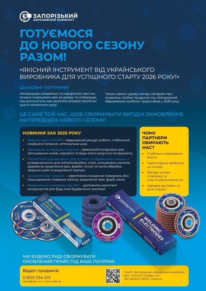 Dear partners, as the Christmas and New Year holidays approach, we would like to thank you for your trust and cooperation throughout a challenging yet meaningful year. This is the perfect moment to plan cost-effective orders for the upcoming season and take a closer look at the updated 2025 product range by Zaporizhzhia Abrasive Plant (ZAP).
